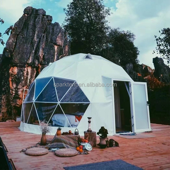 2024 new design dome tent for outdoor glamping. Using transparent tempered glass instead of transparent PVC makes the product more high-end and durable